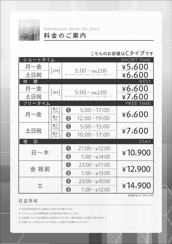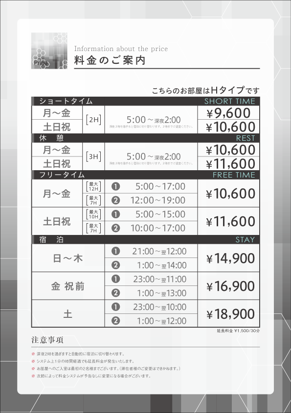 はい、可能です。延長料金を退室時にお支払いいただきます。